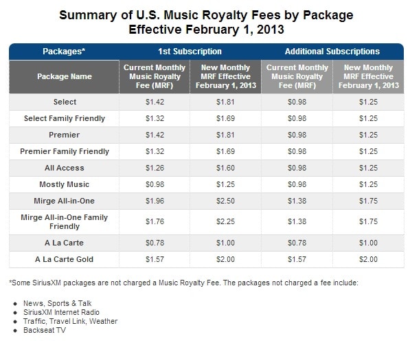 Maybe because I have an annual plan, but the fee they identified for the Music Royalty was only $15.62 for the year, beginning 2.16, for my Sirius Select package. For the 2nd sub it was $10.77/year. Or maybe they just like me more than the average sub.