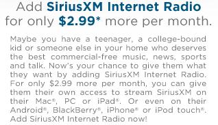 What Sirius XM is doing is asking people to add Internet streaming to their account for $2.99 per month. They then ask you to share the access with someone like a child or college student so that they can enjoy the benefits of Sirius XM. Whether or not the promotion gains traction will be interesting to watch.