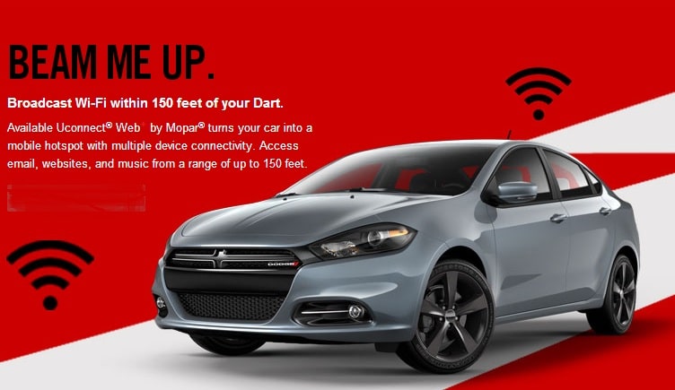 The 2013 Dodge Dart is being heavily advertised right now. Chrysler has made it known that this car, starting at about $16,000 has its own WiFi. Essentially the Dodge Dart creates its own 3G Hotspot that carries a range of 15o feet! For just $29.95 per month a consumer can now have a connected car, saving the cell phone for the functions it was originally designed for.